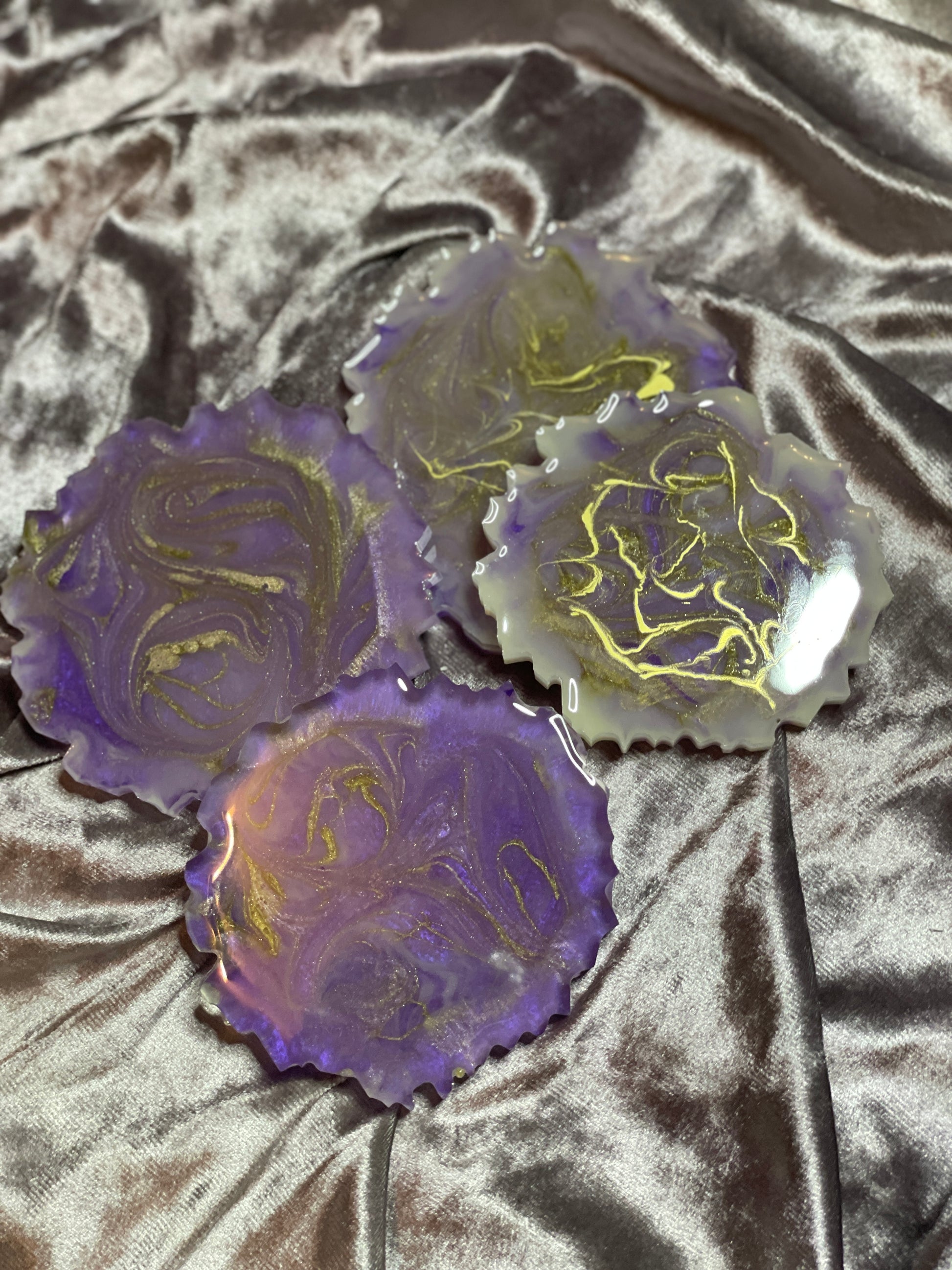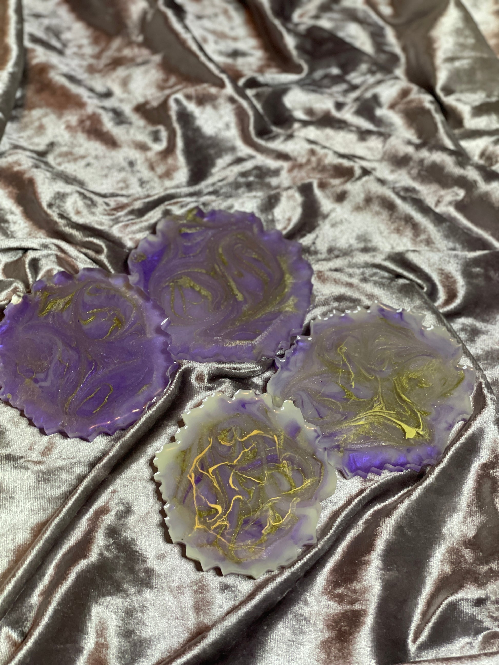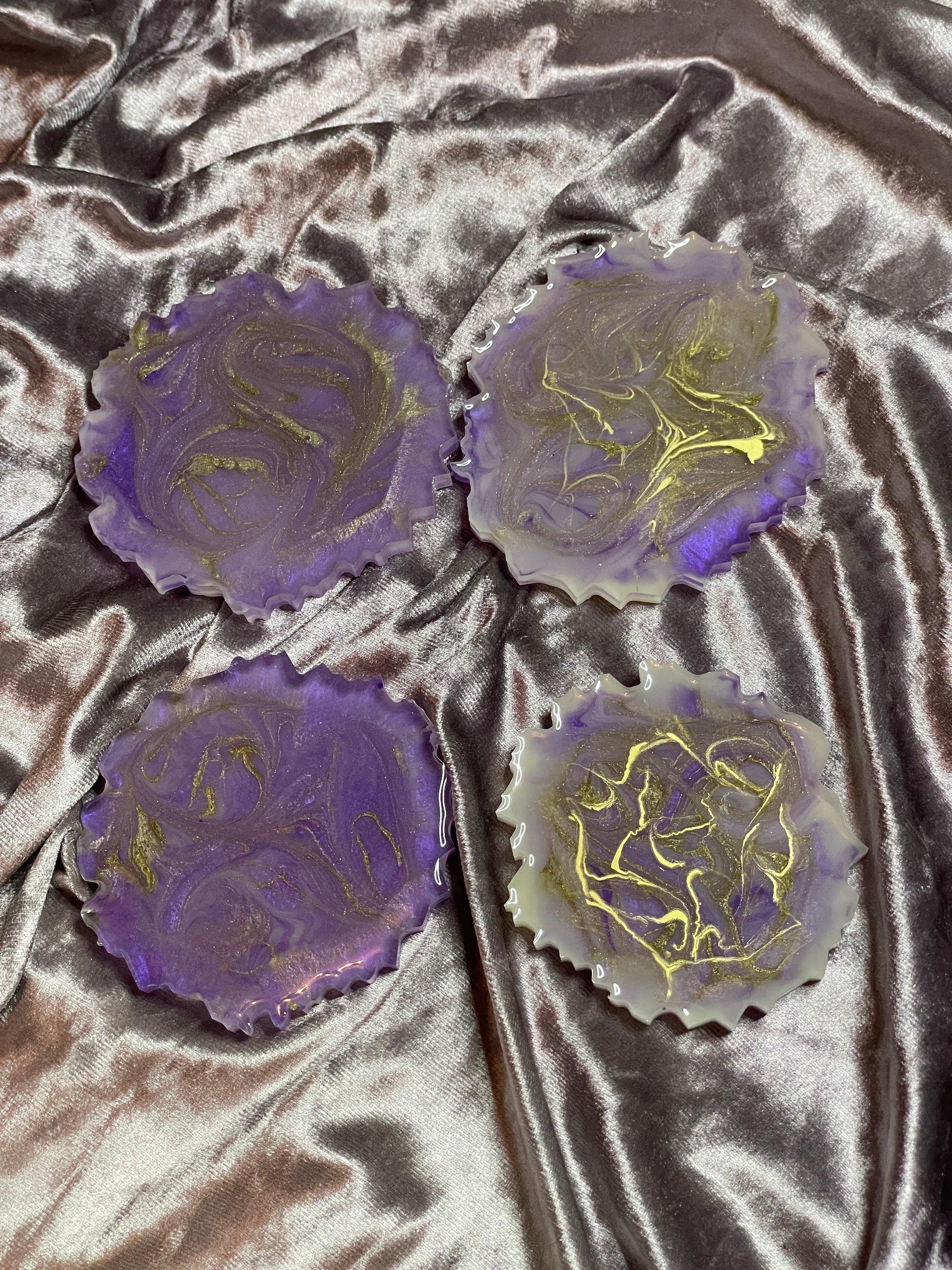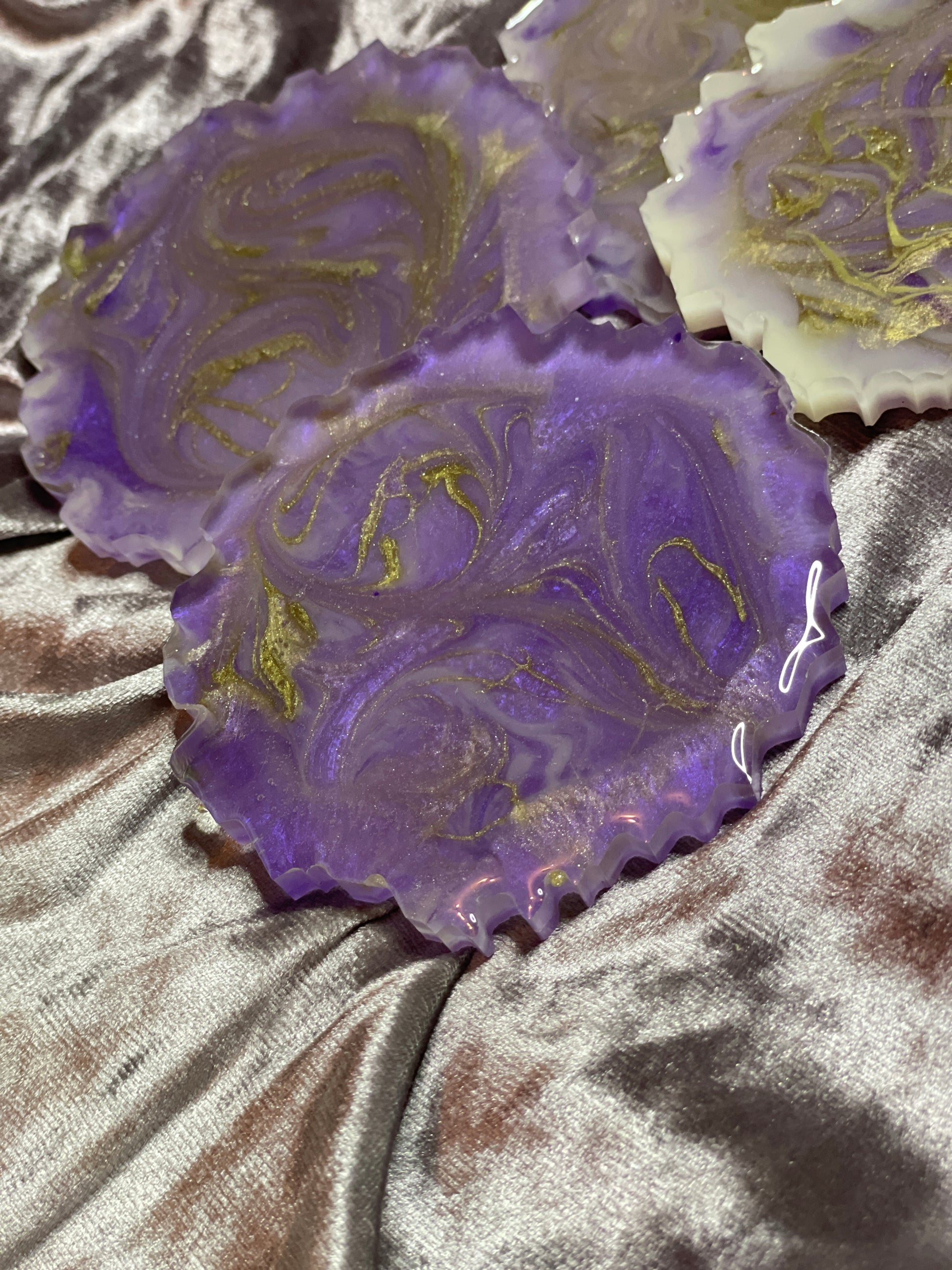 Set of 4 - Purple, white and gold Small Irregular Round Coasters
