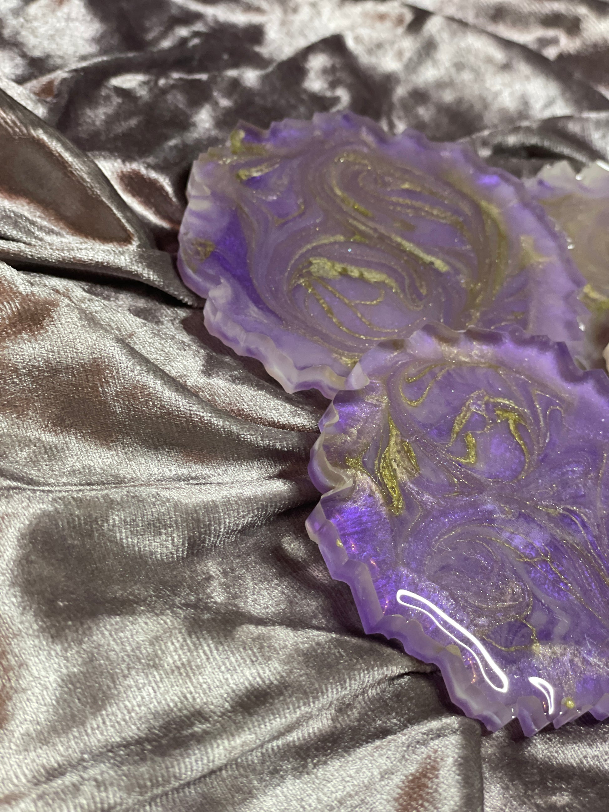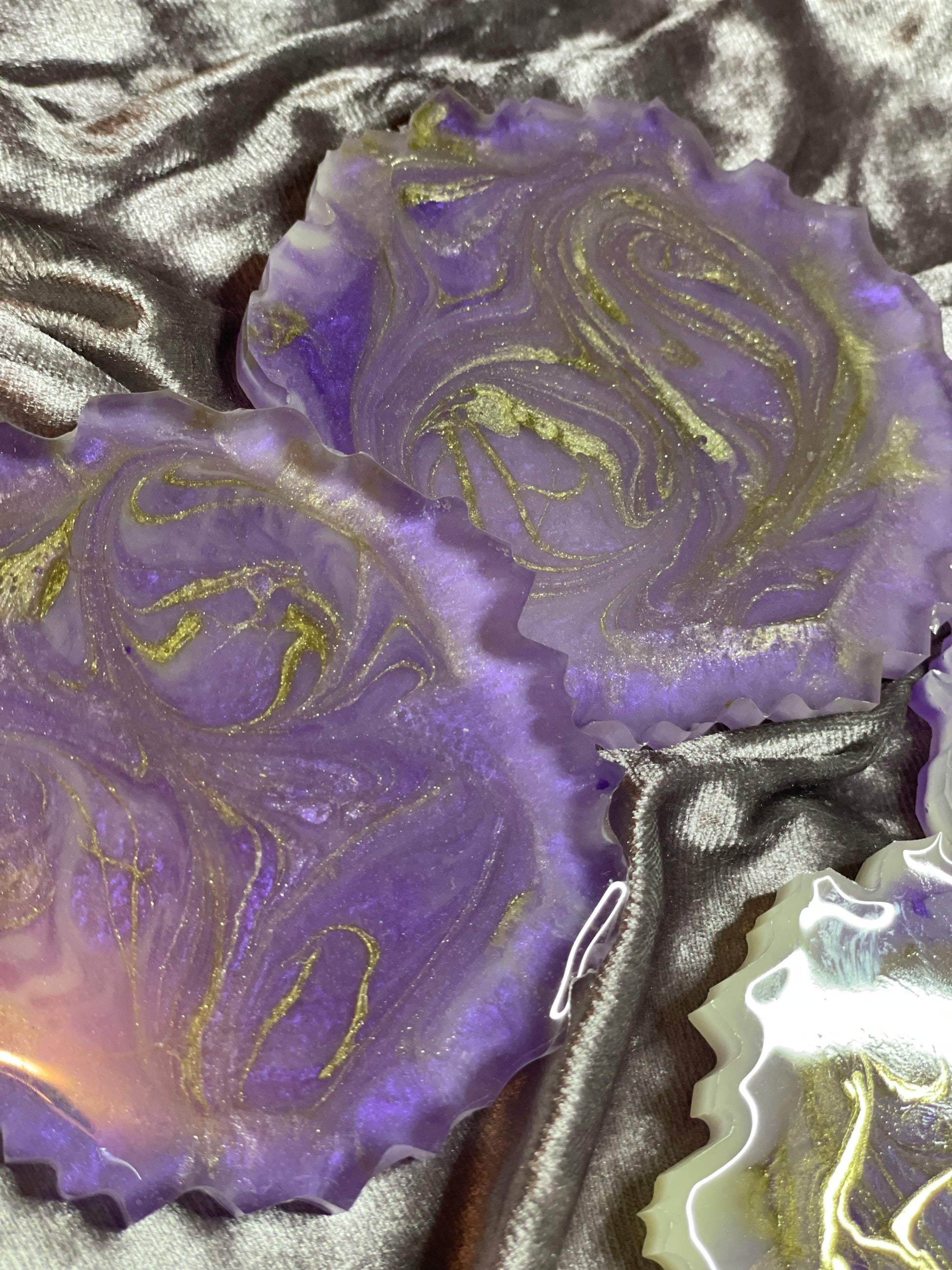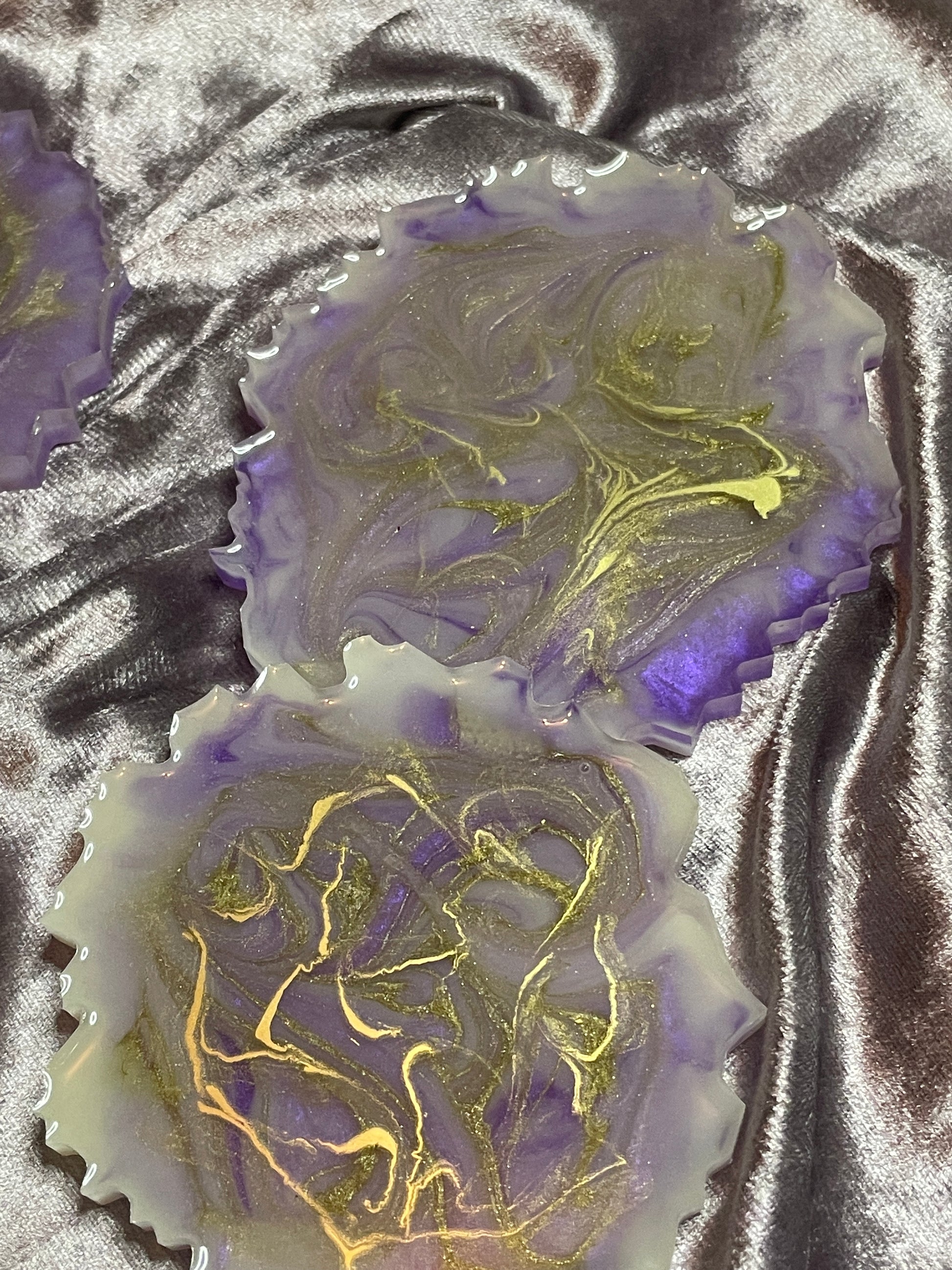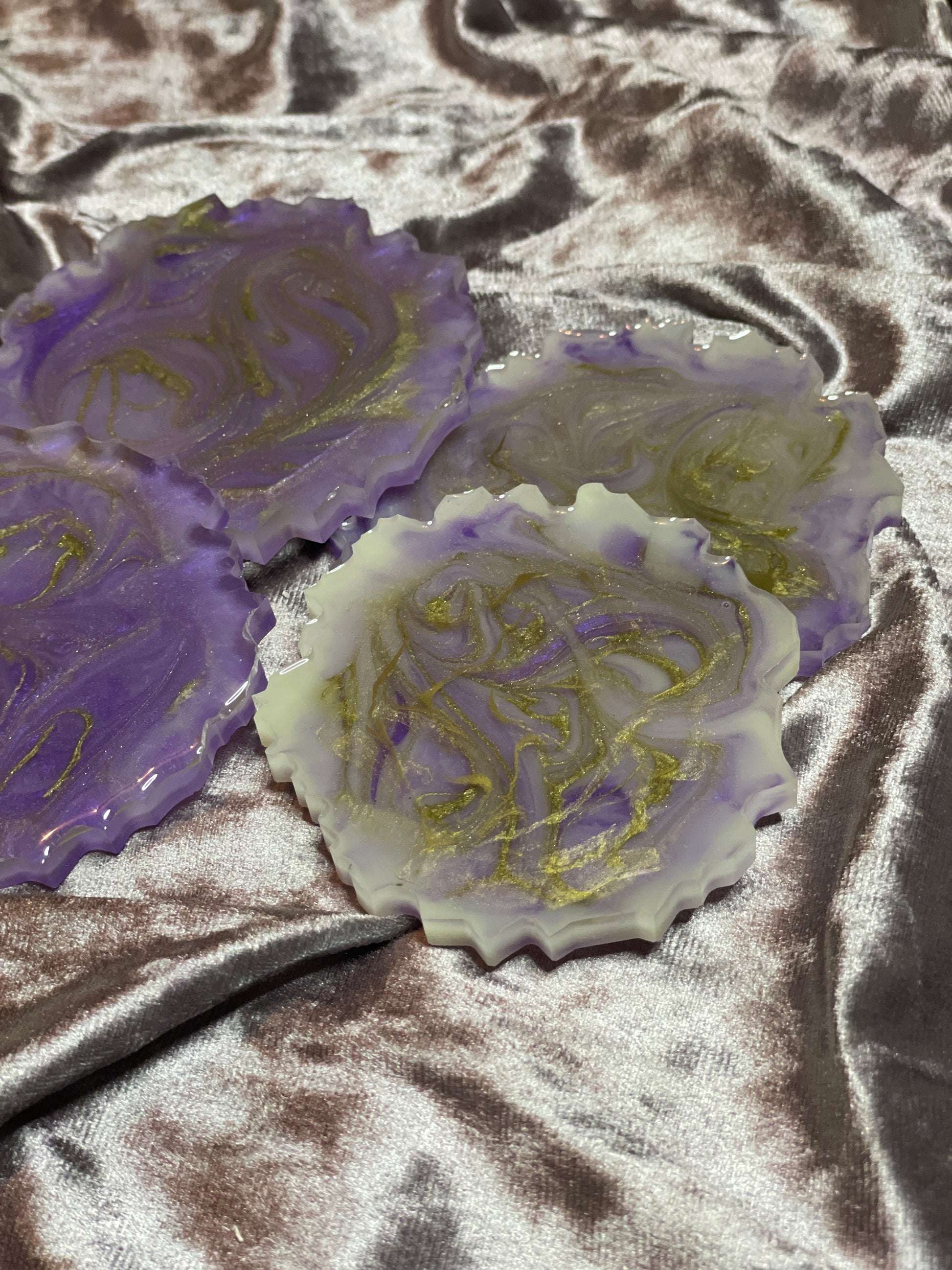 Set of 4 - Purple, white and gold Small Irregular Round Coasters