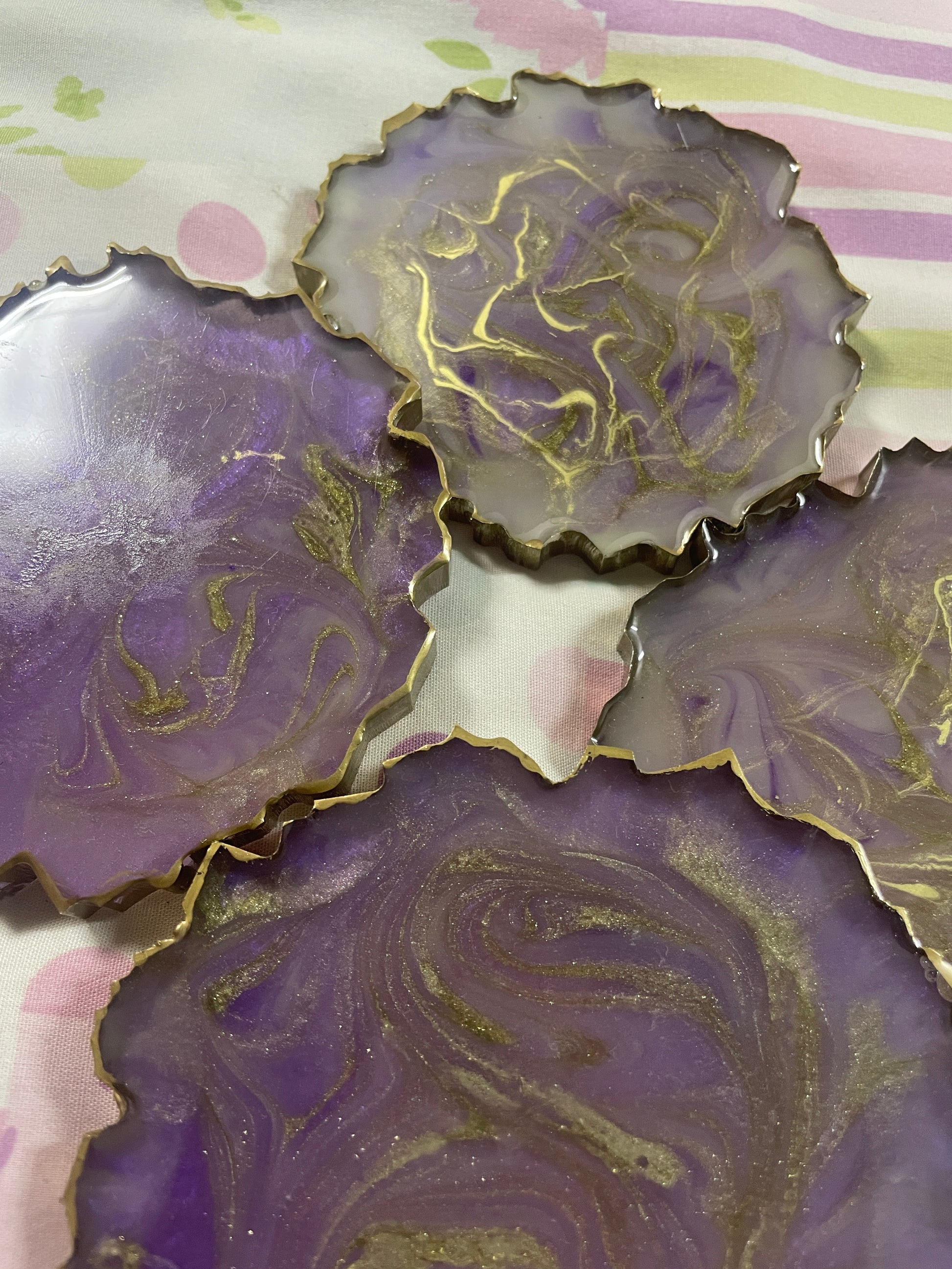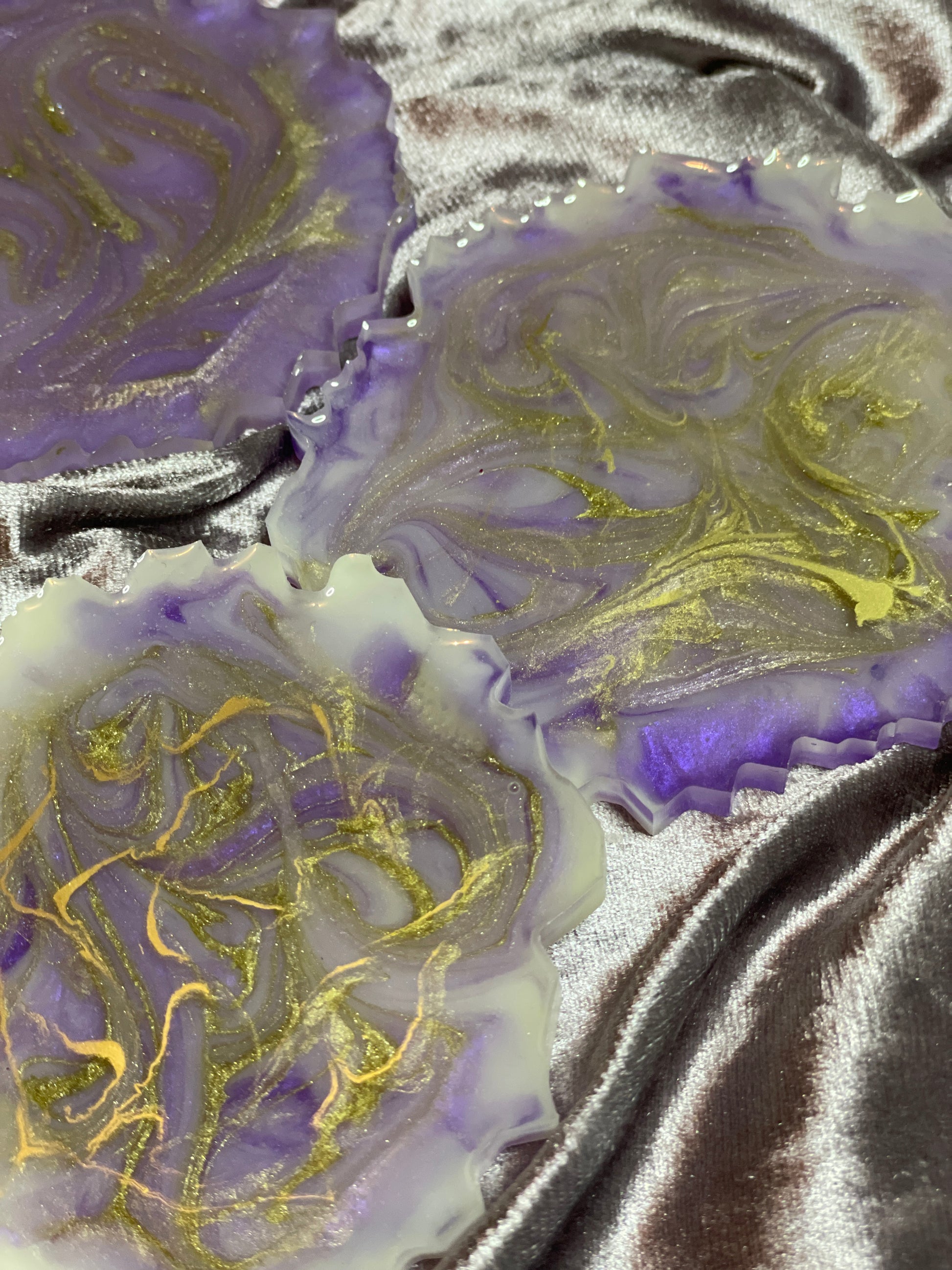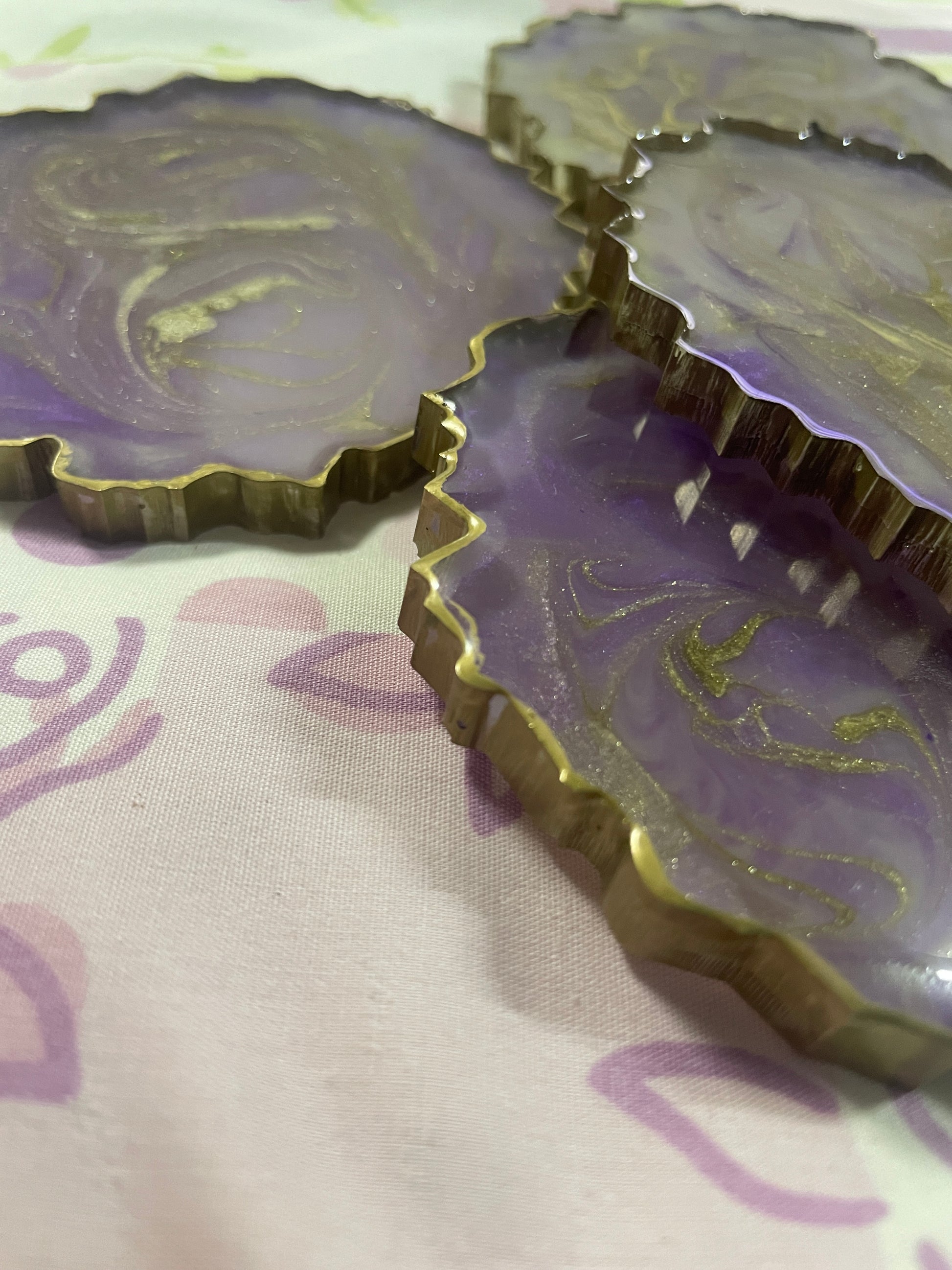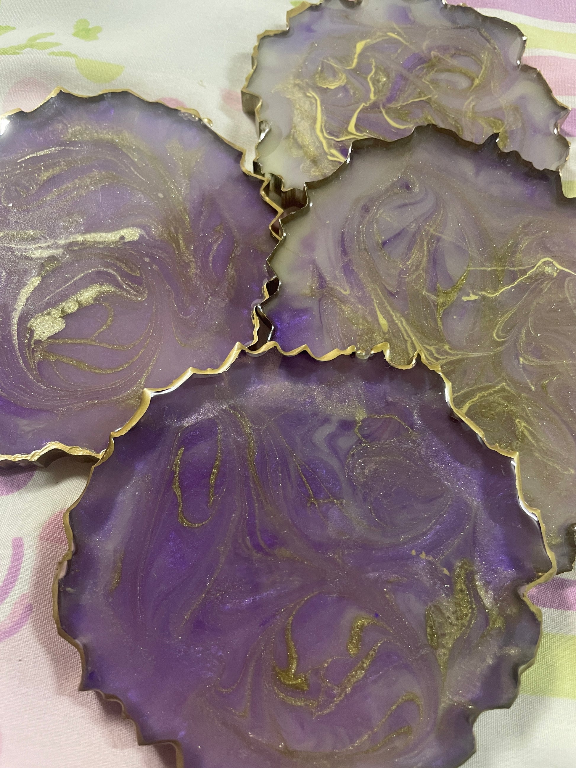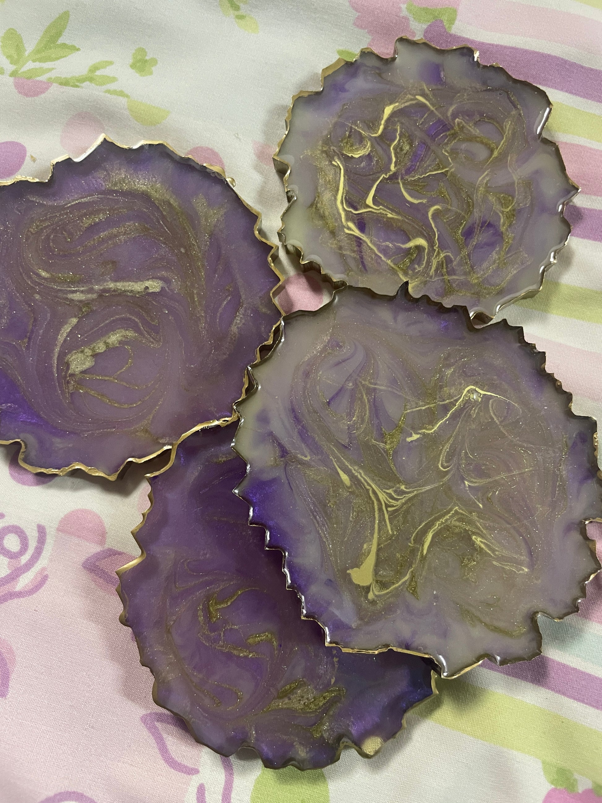 Set of 4 - Purple, white and gold Small Irregular Round Coasters