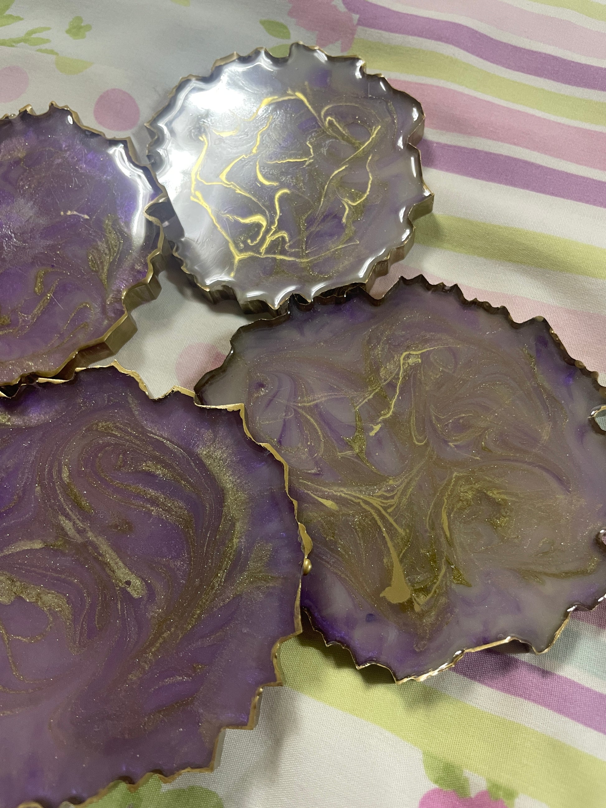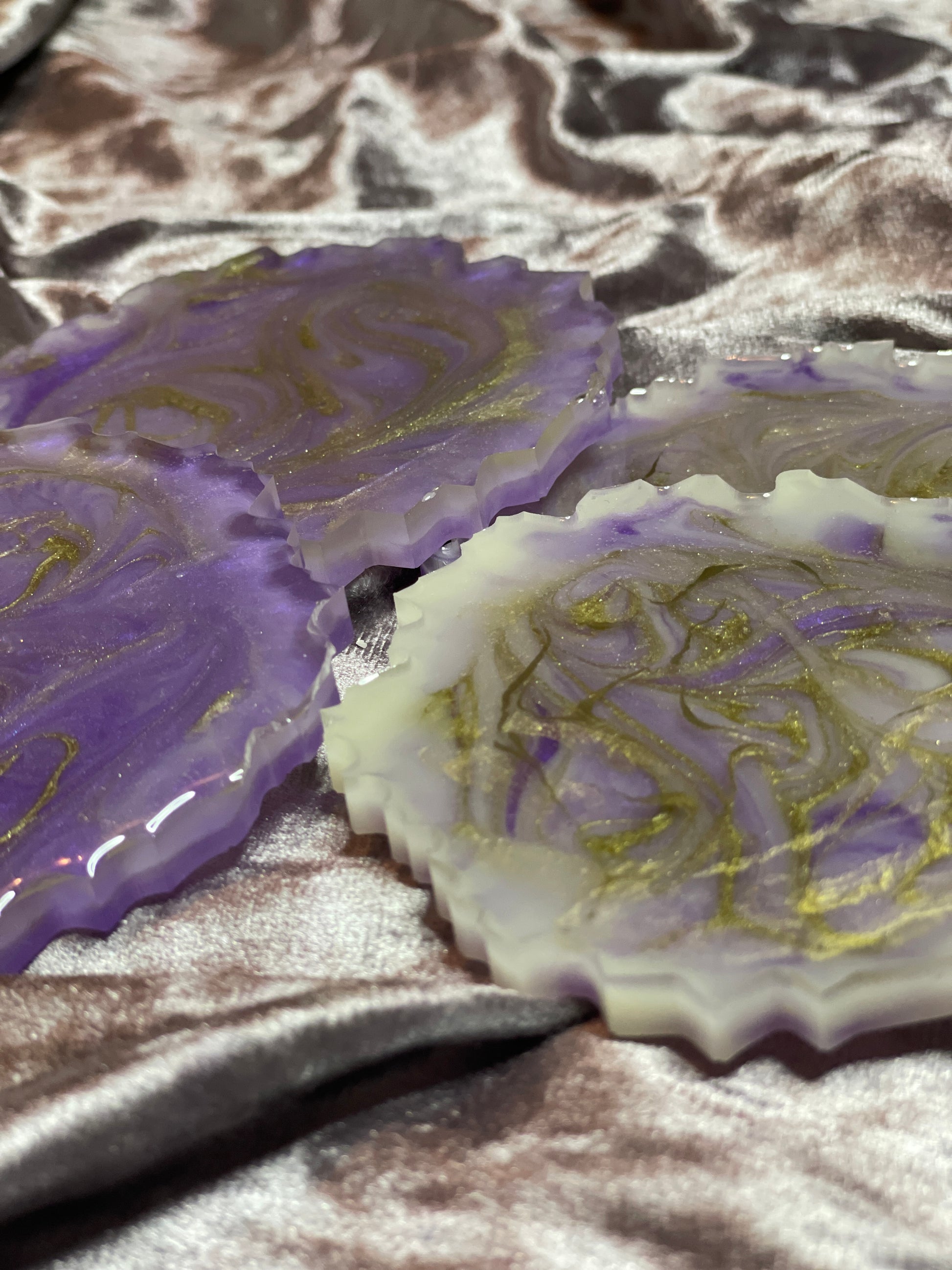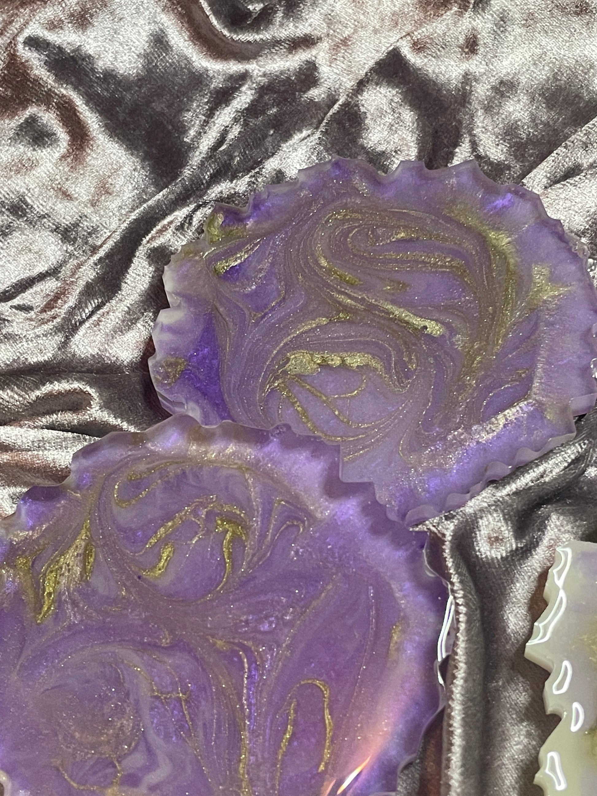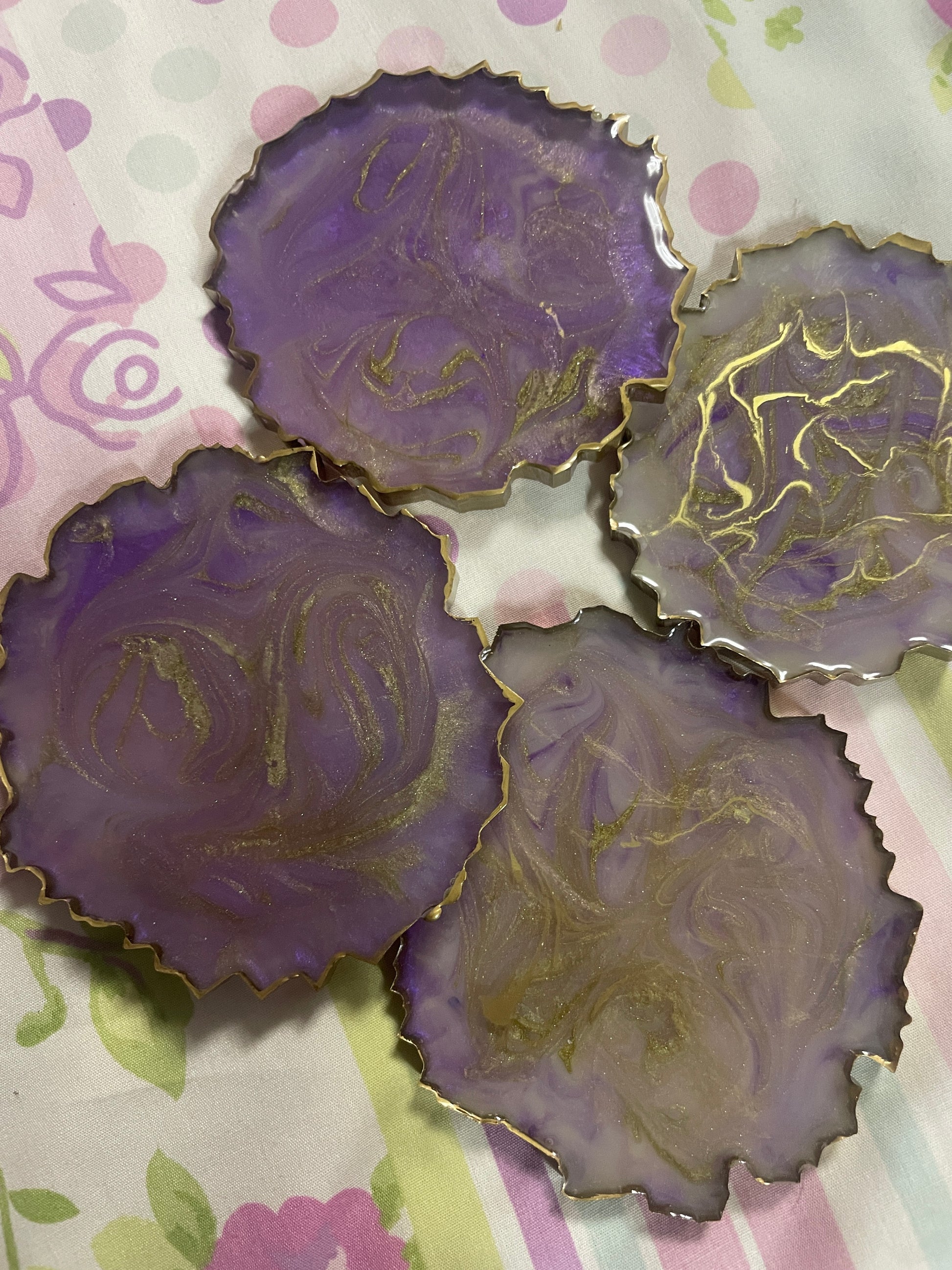 Set of 4 - Purple, white and gold Small Irregular Round Coasters