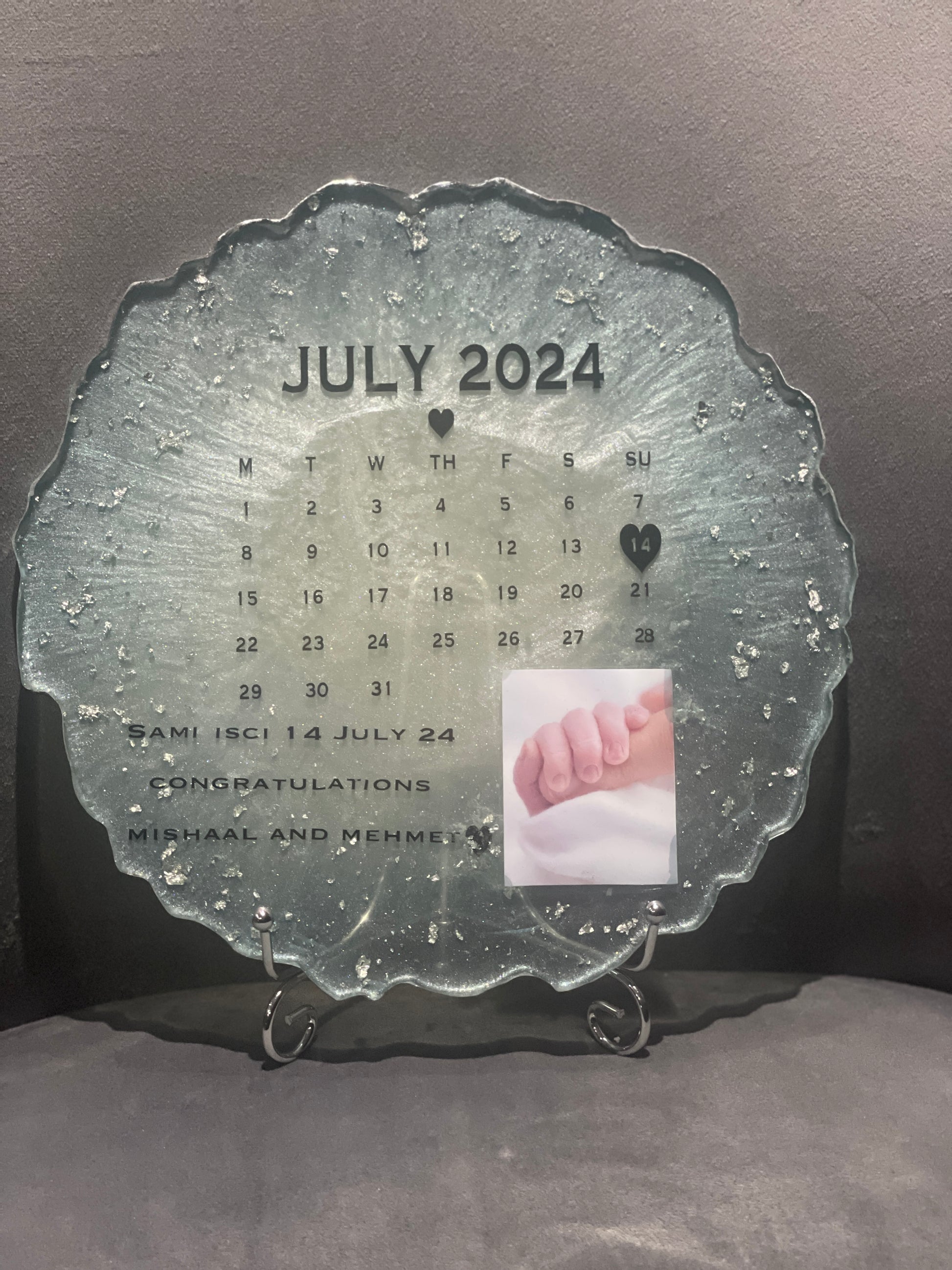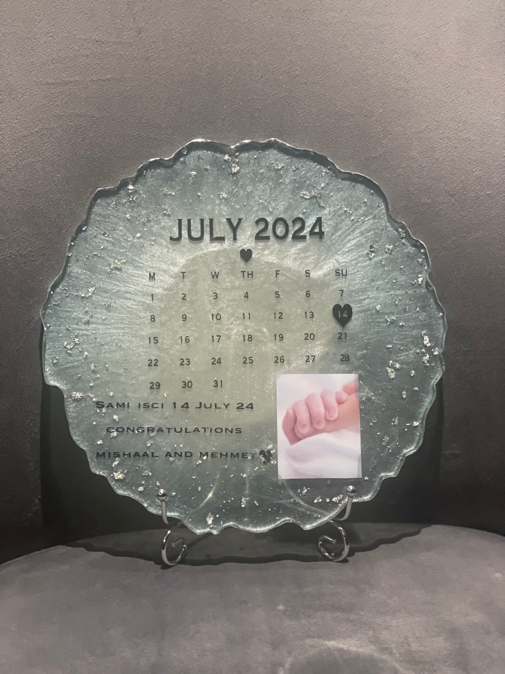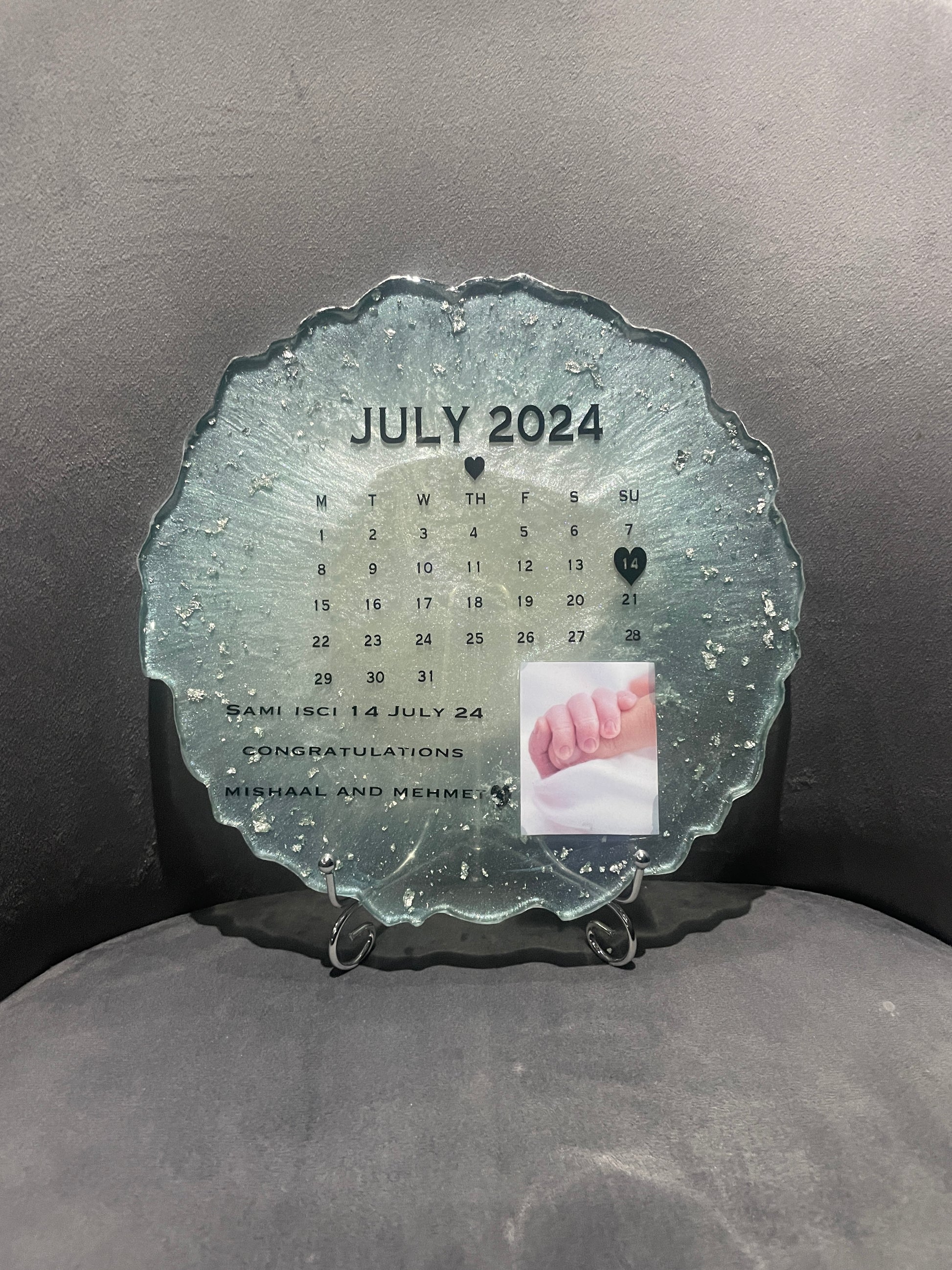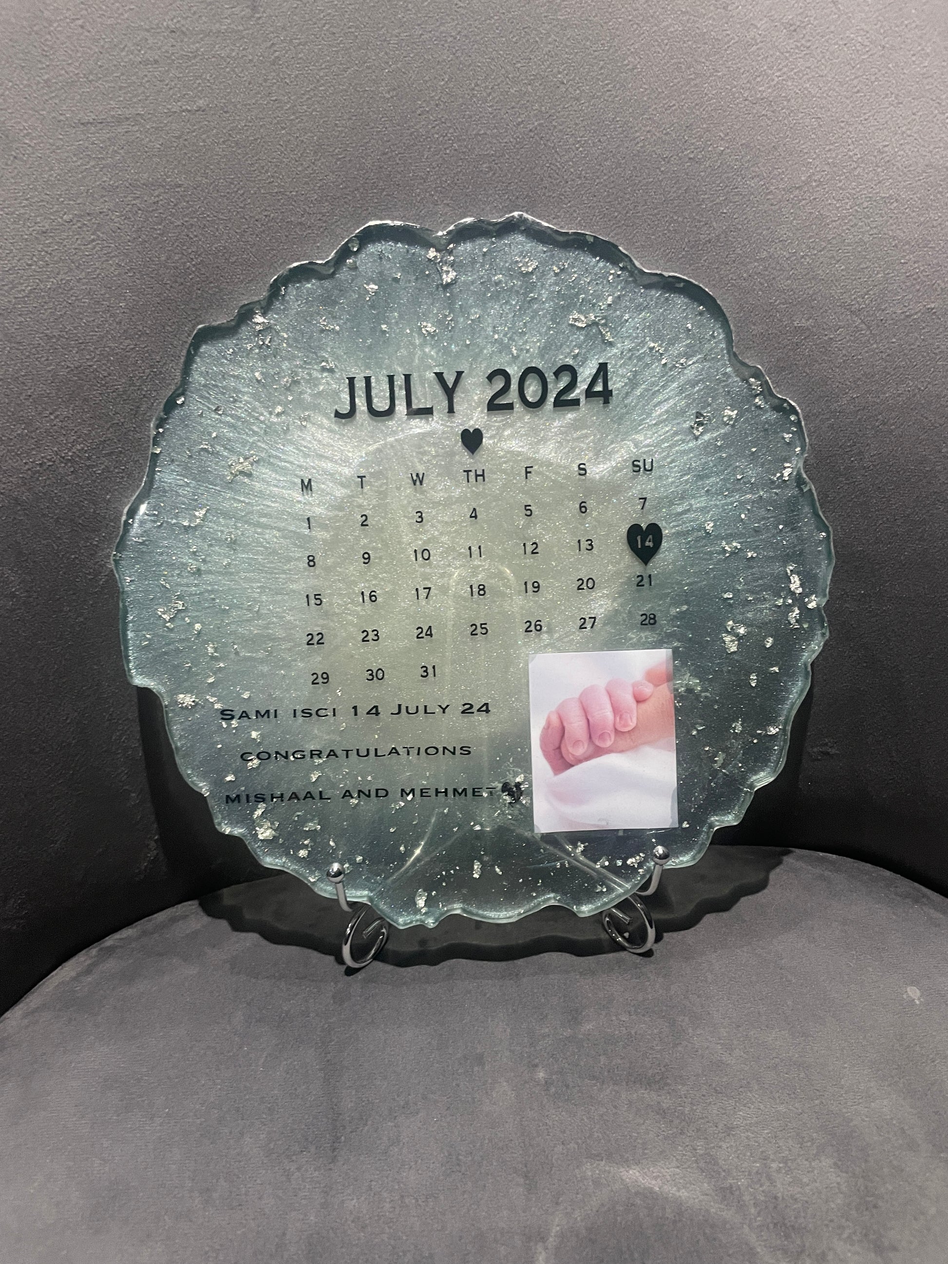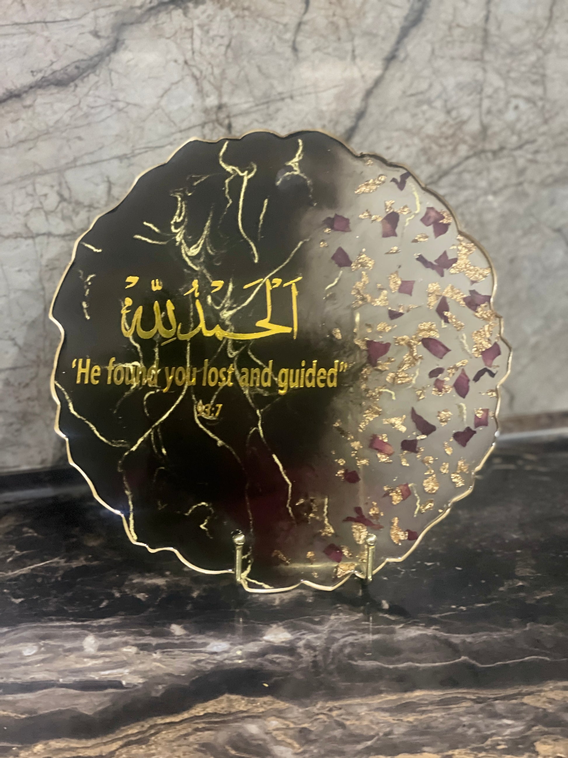 Handmade Personalised Round Resin Plaque- with metal stand customised to your home!