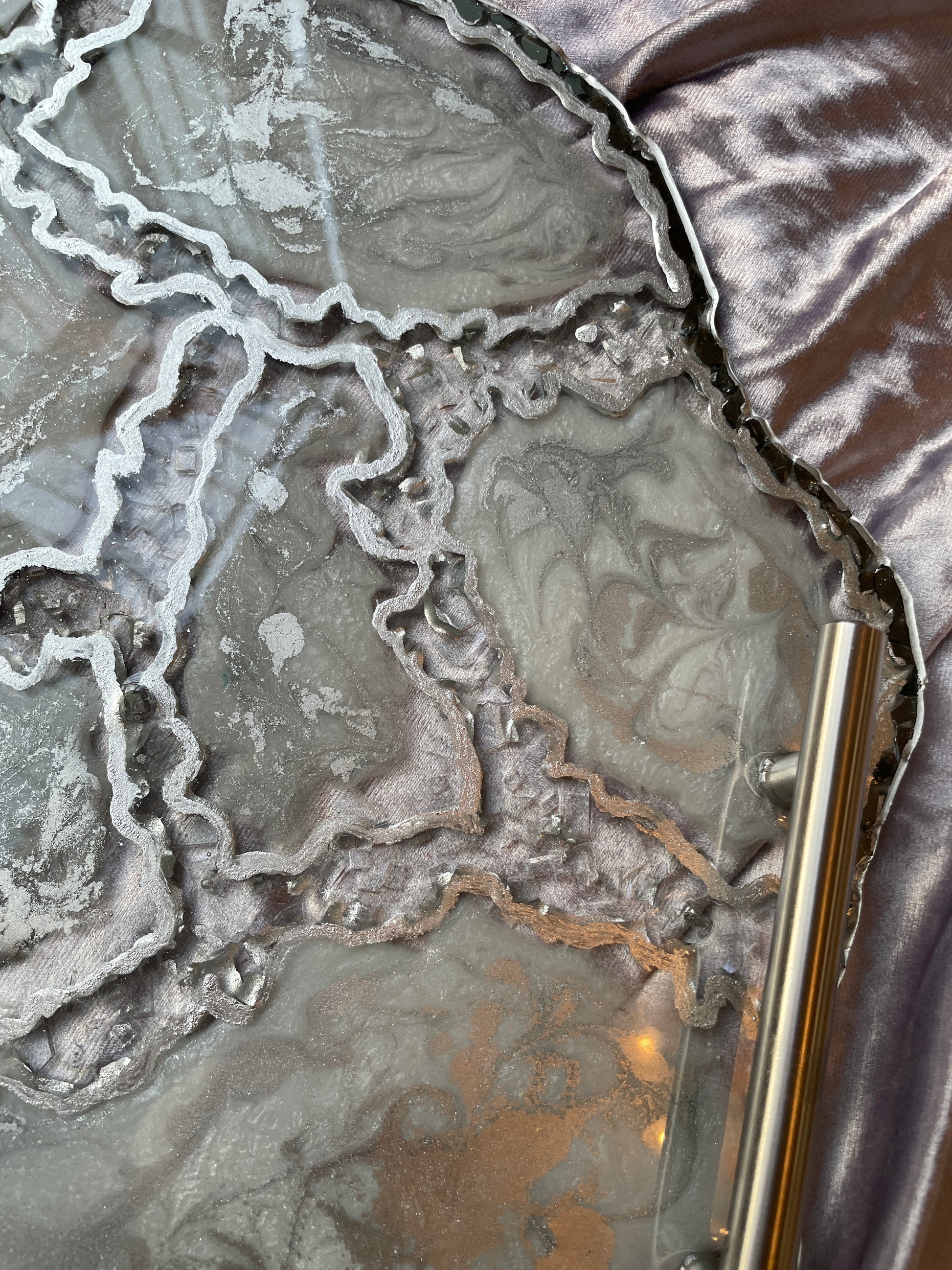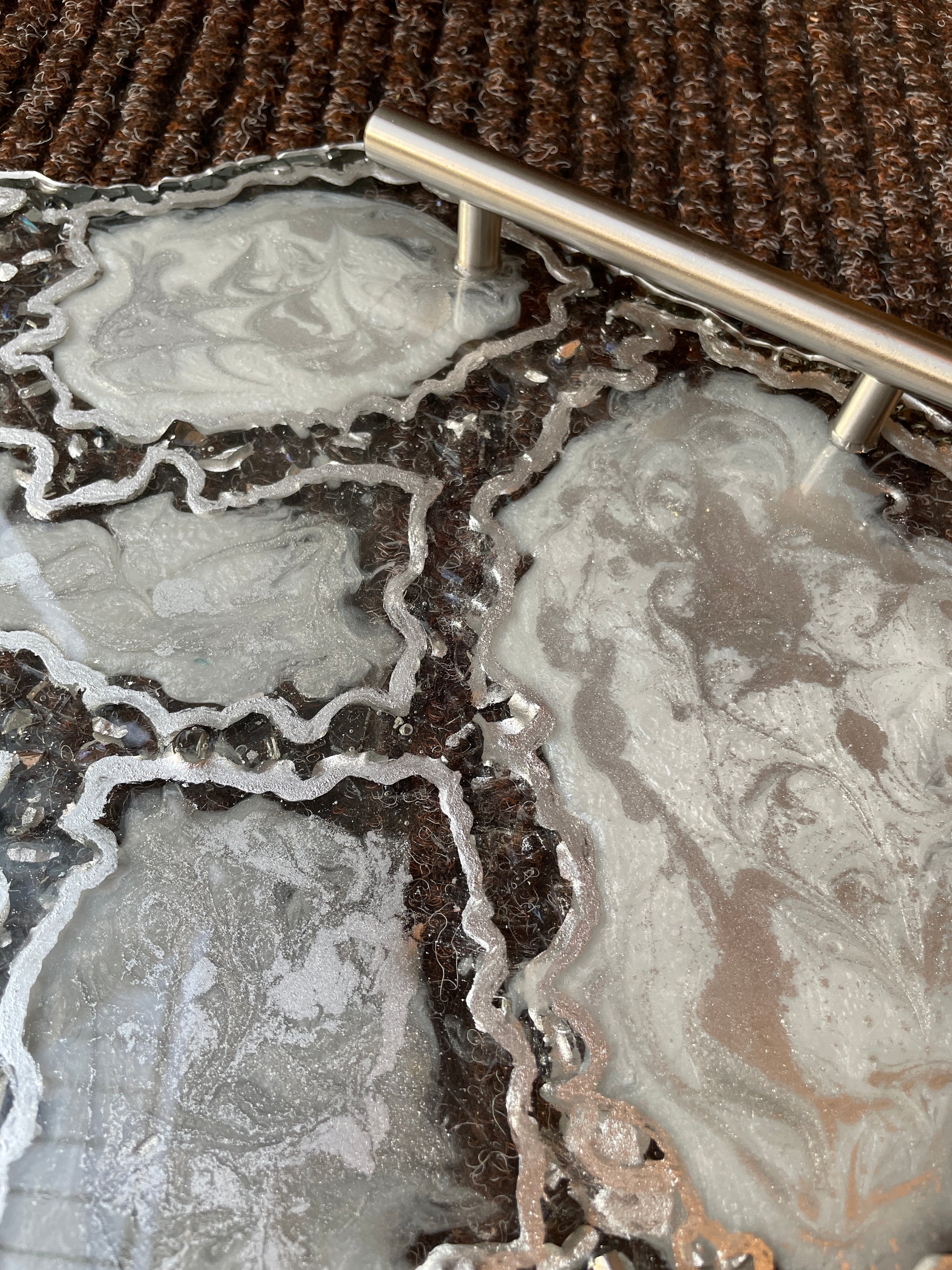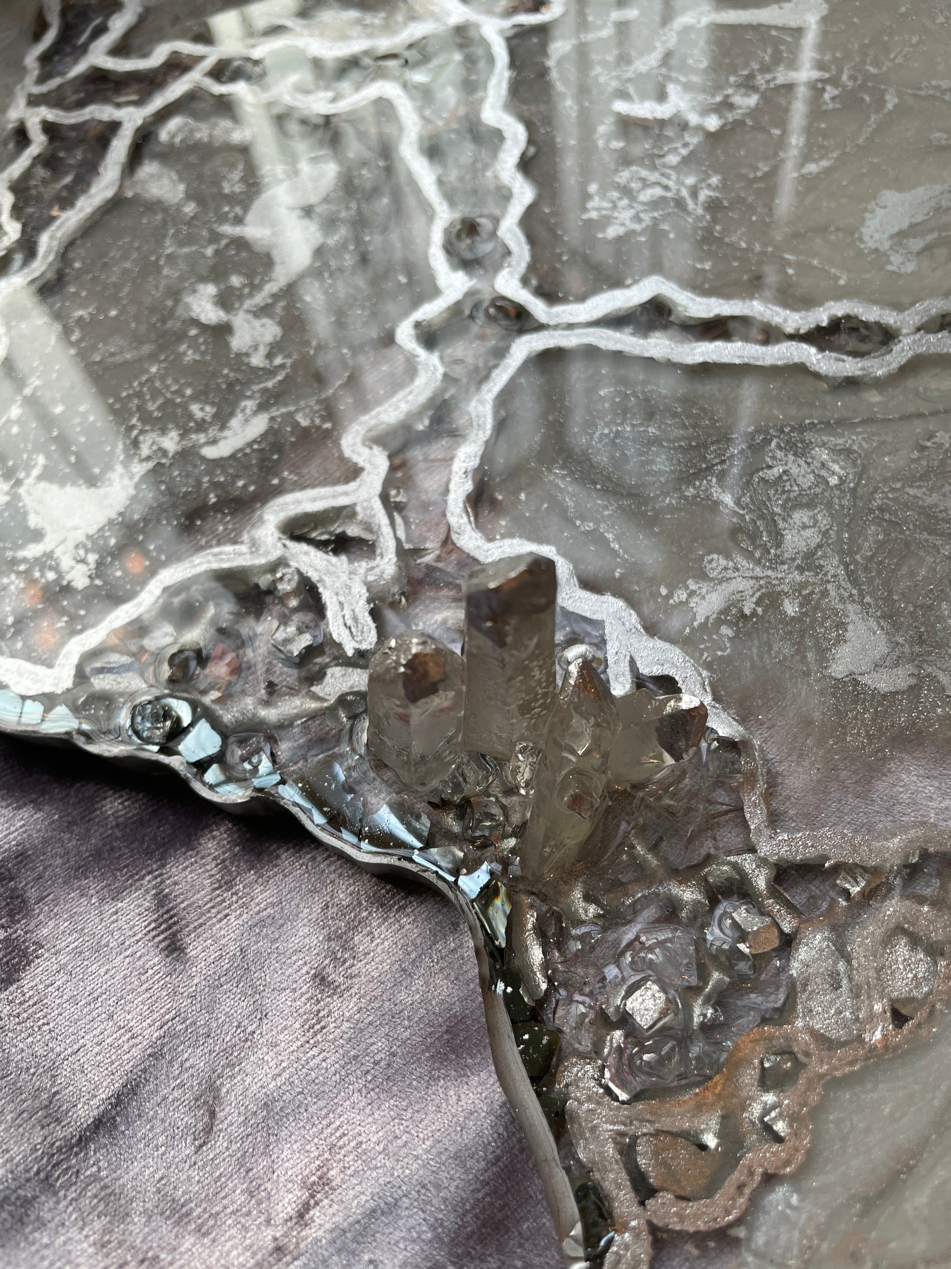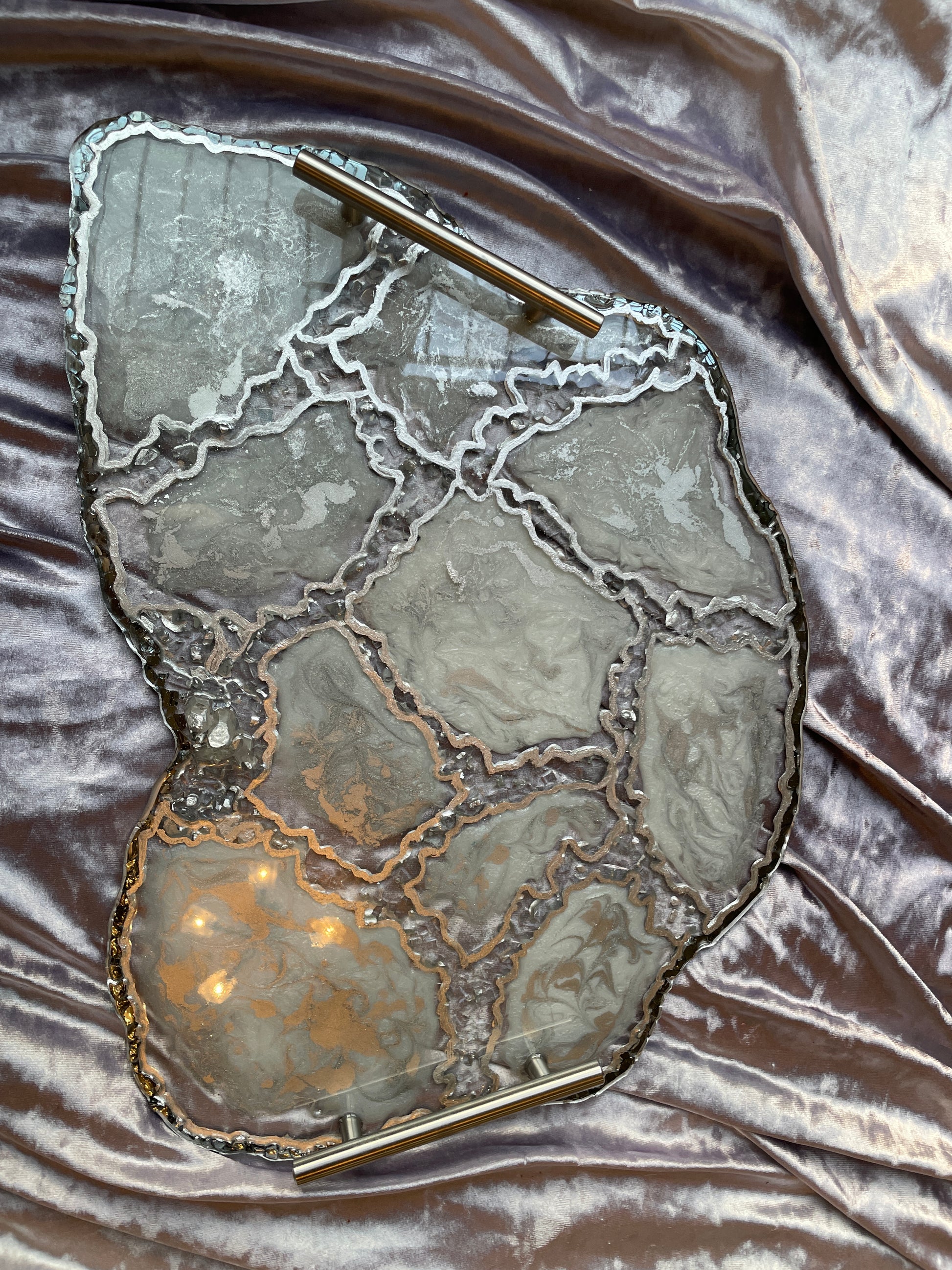 Handmade Silver and White Quartz and Glass Large Geode Resin Tray