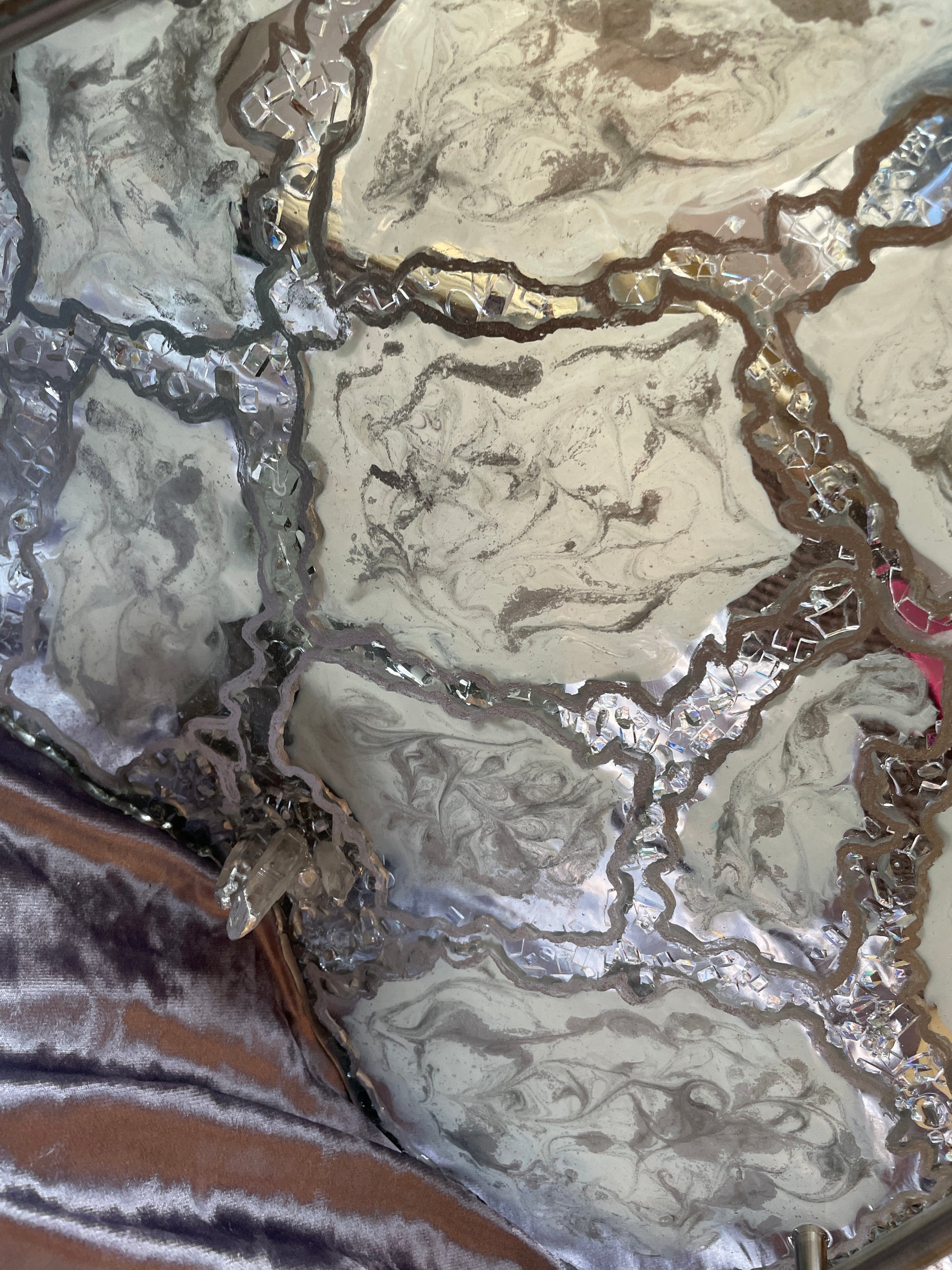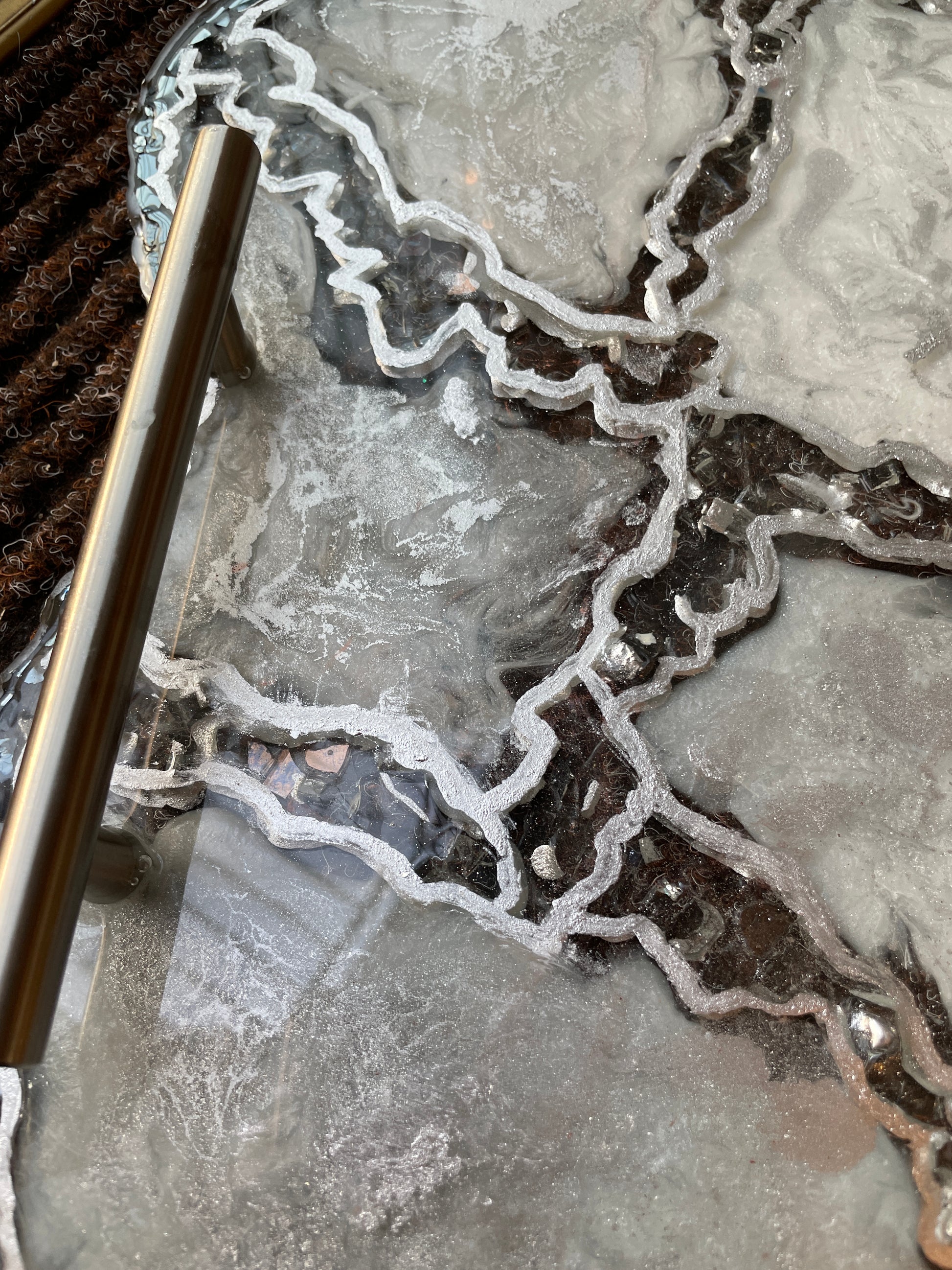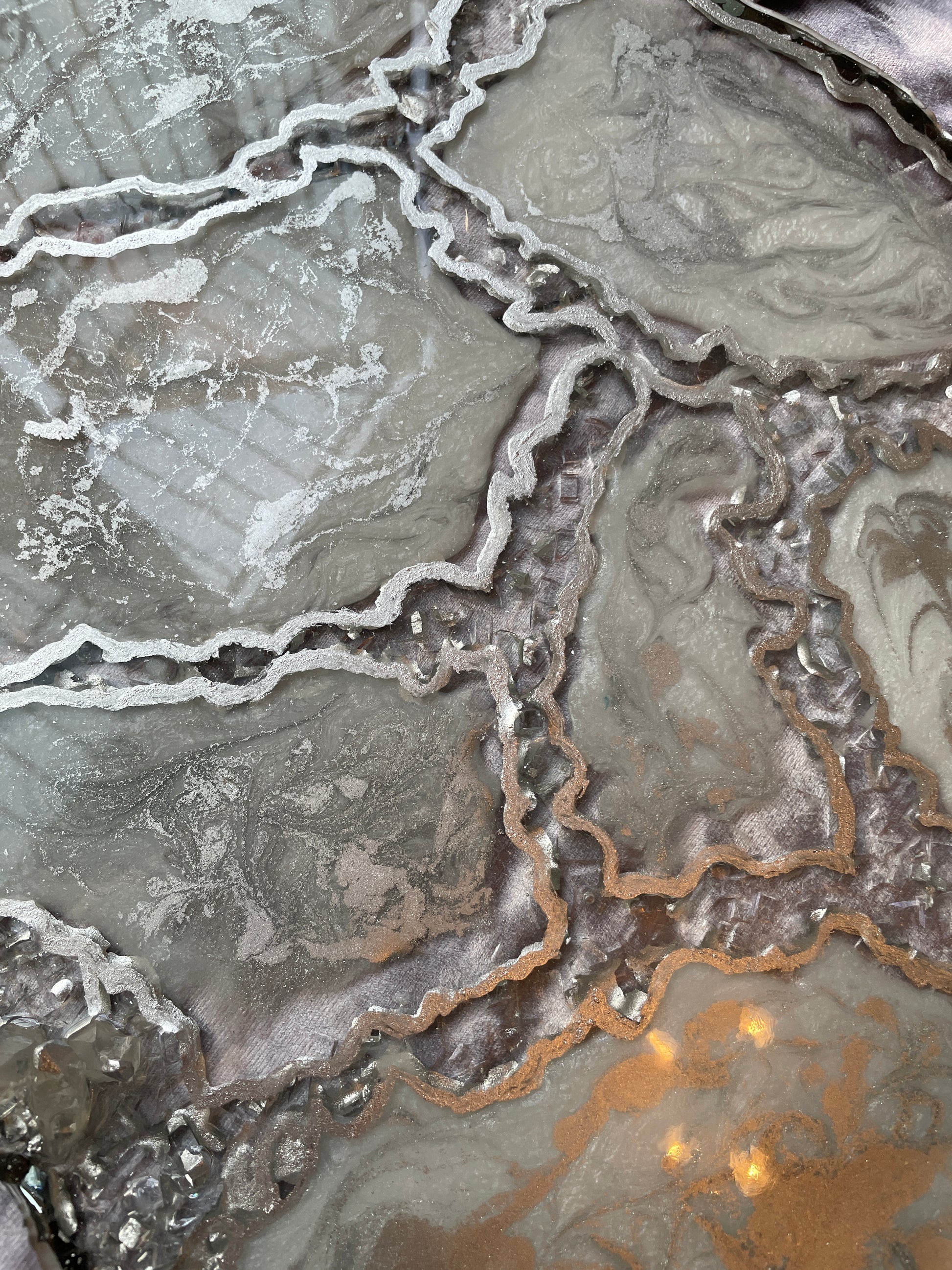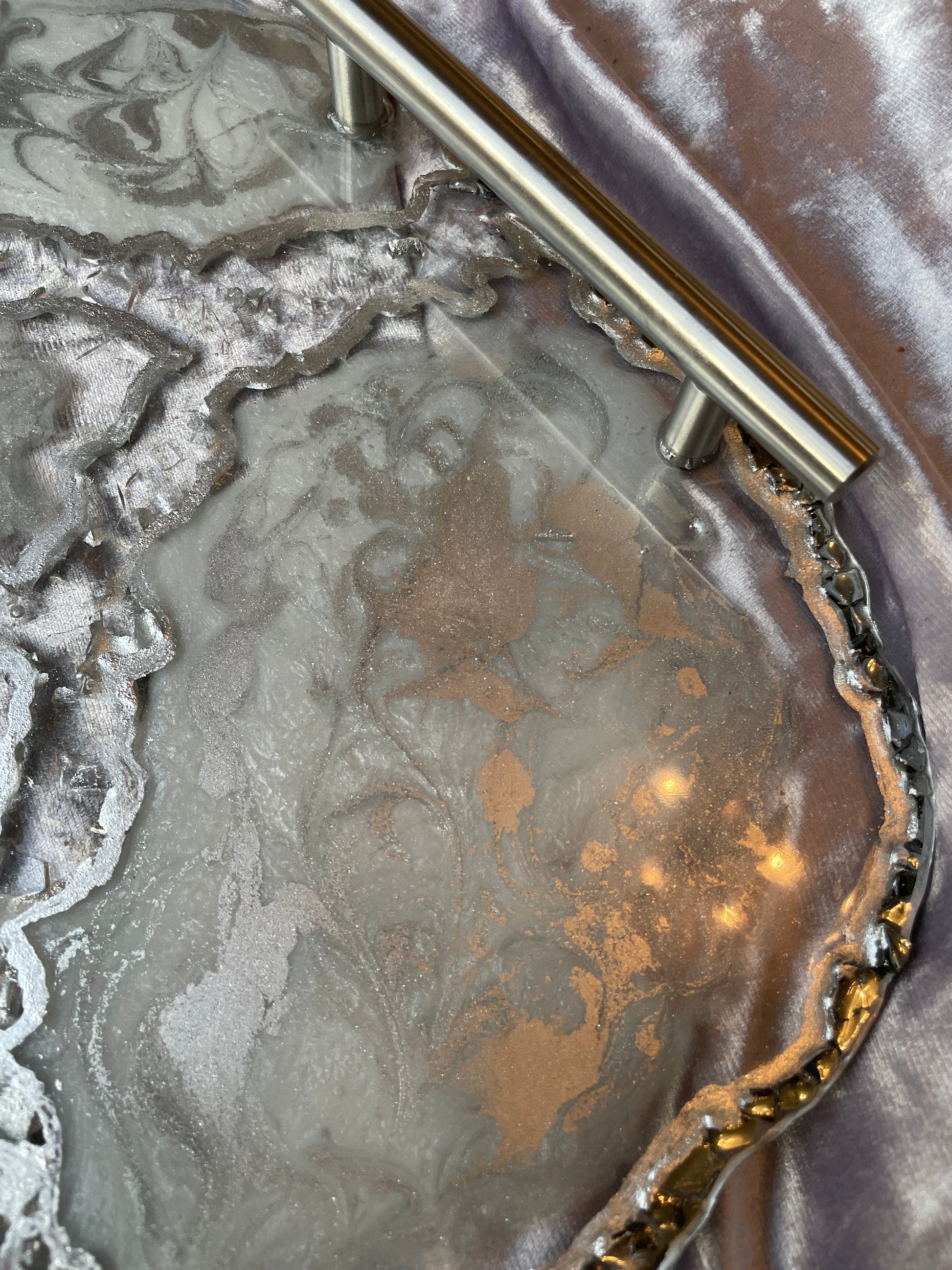 Handmade Silver and White Quartz and Glass Large Geode Resin Tray