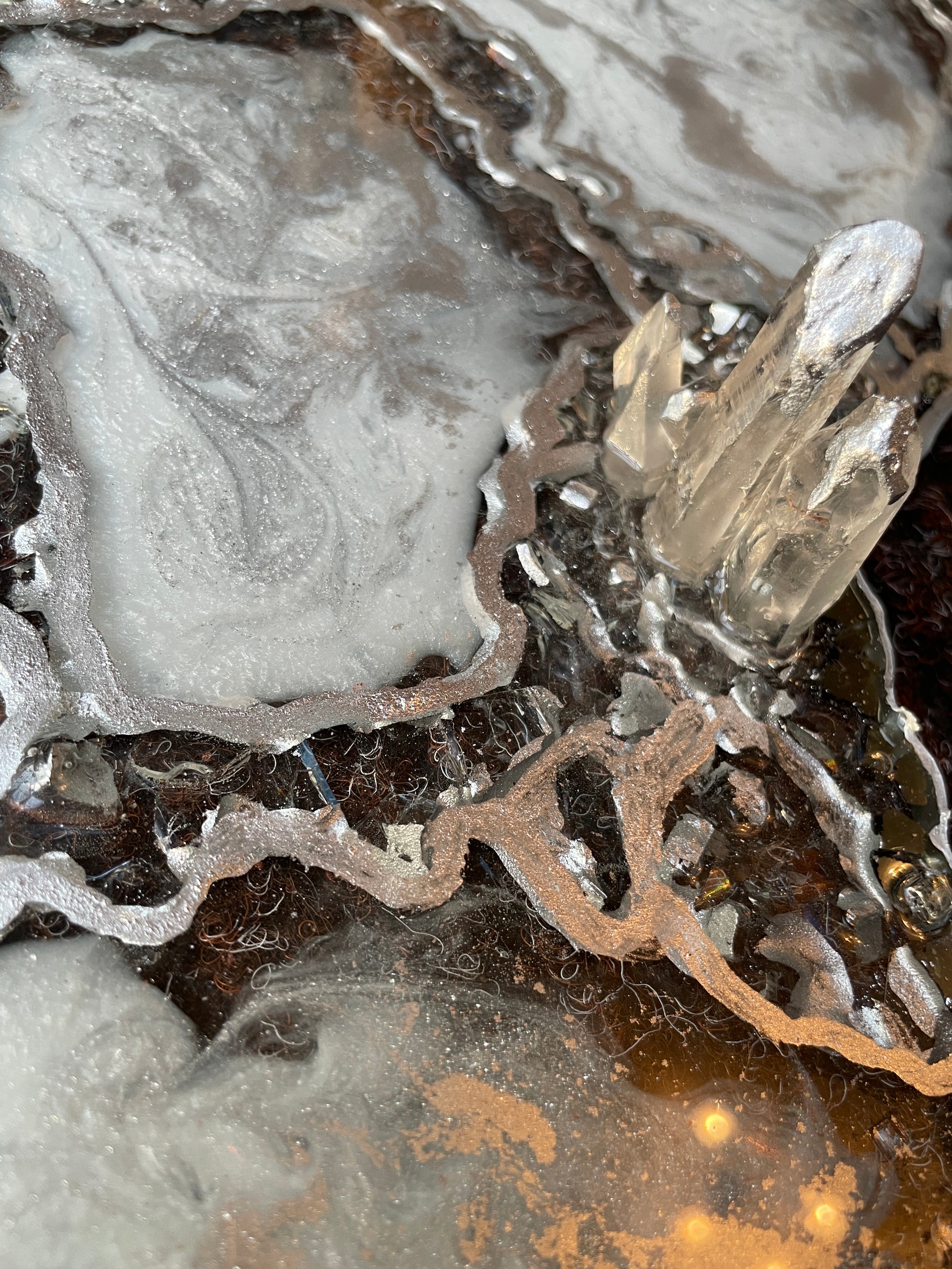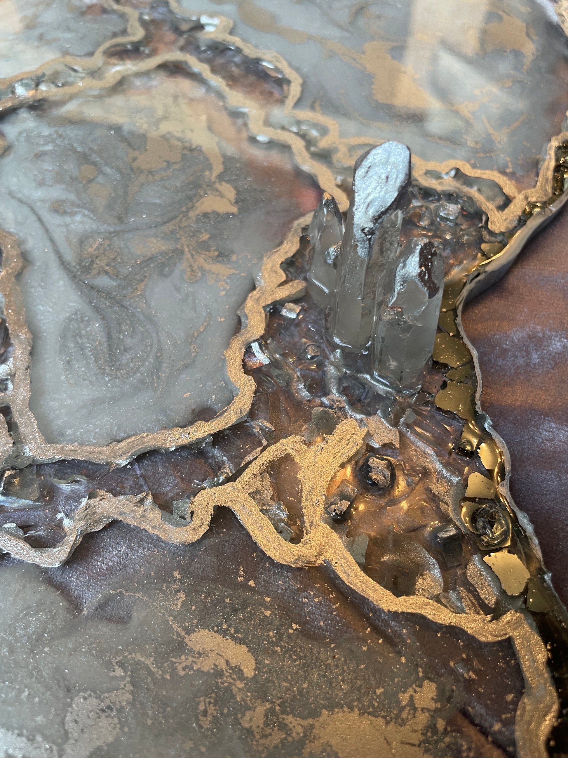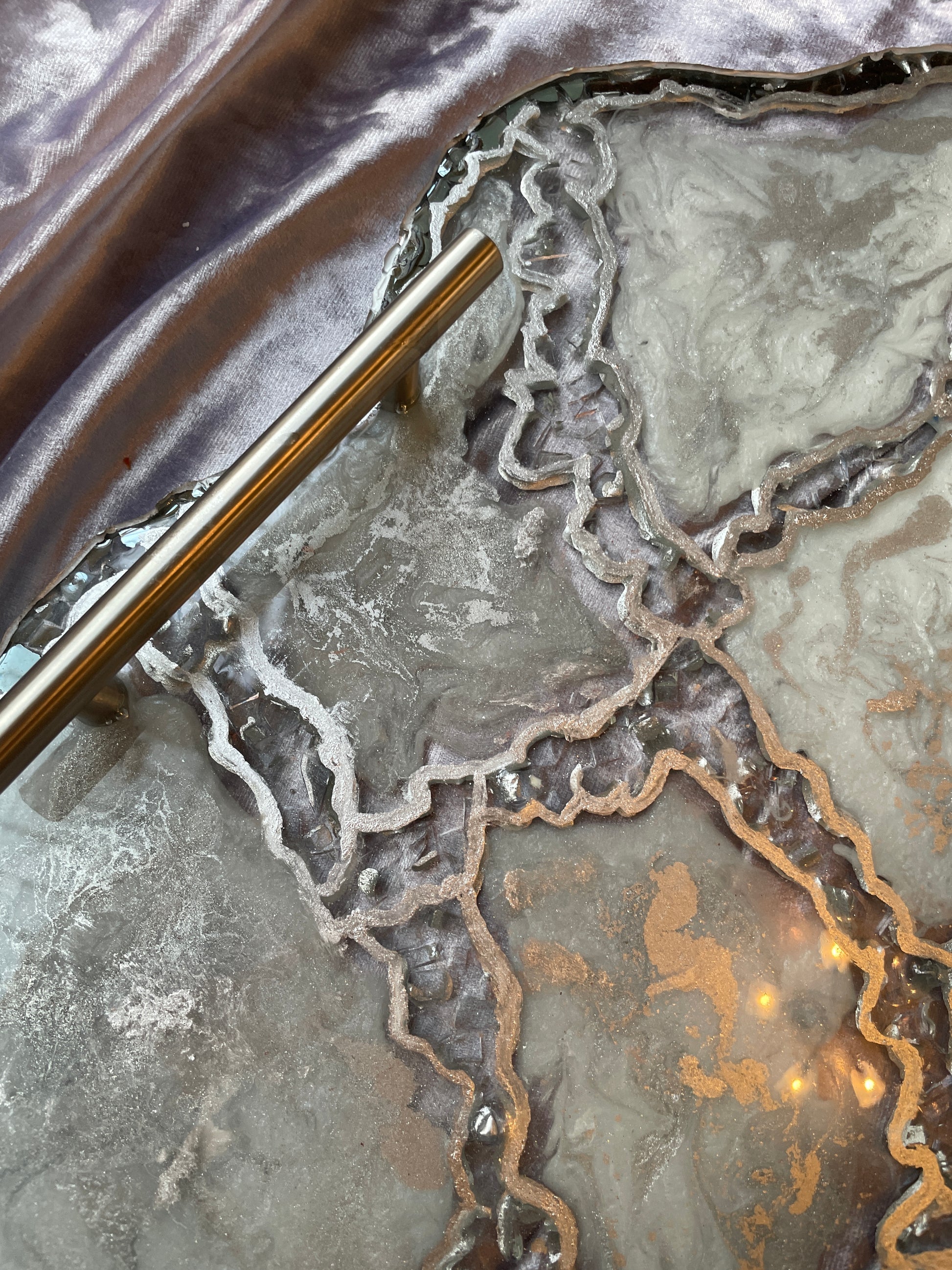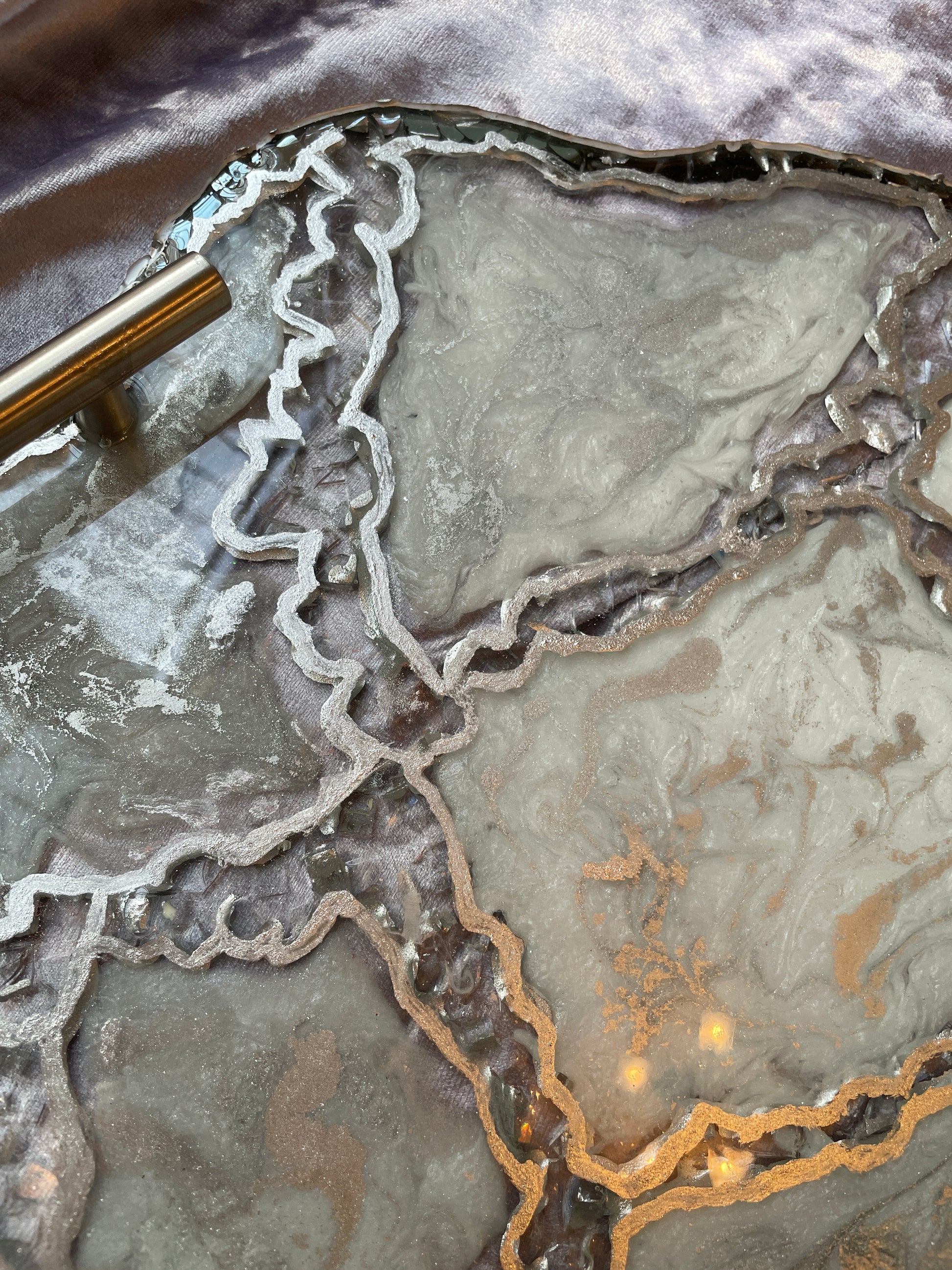 Handmade Silver and White Quartz and Glass Large Geode Resin Tray
